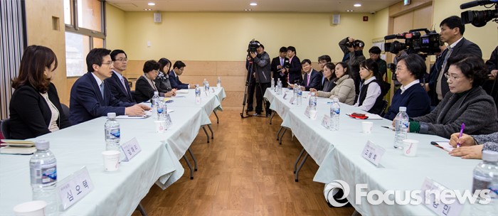 (서울=포커스뉴스) 만3-5세 유아에게 공통적으로 제공하는 교육, 보육 과정인 누리과정 예산 파행으로 보육대란이 이어지고 있는 28일 오후 서울 종로구 한 어린이집을 찾은 황교안 국무총리가 교사들과 간담회에 앞서 인사말을 하고 있다.