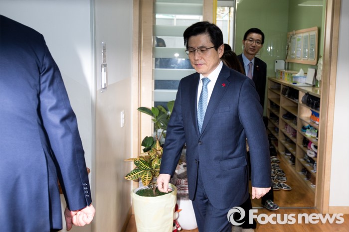 (서울=포커스뉴스) 만3-5세 유아에게 공통적으로 제공하는 교육, 보육 과정인 누리과정 예산 파행으로 보육대란이 이어지고 있는 28일 오후 서울 종로구 한 어린이집을 찾은 황교안 국무총리가 교사들과 대화를 나누기 위해 간담회장으로 들어서고 있다.