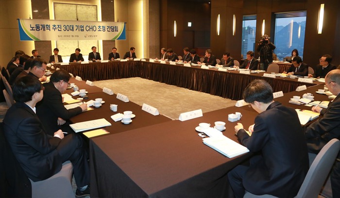 | △ 고용부, 노동개혁 추진 30대 기업 CHO초청 간담회 |