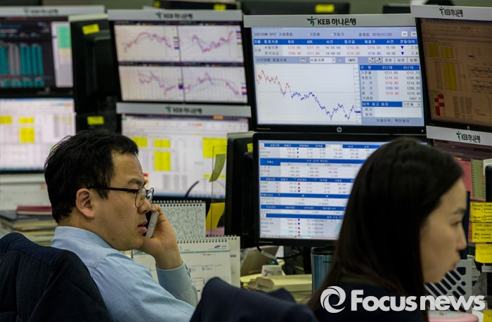 하건형 신한금융투자 연구원은 "중국증시 하락세 지속에 따른 불안감이 상존한다"면서 "중국증시가 안정을 되찾을 경우 원·달러 환율의 하락폭이 확대되겠지만 그렇지 않을 경우 원·달러 환율은 전거래일 종가 근처에서 등락을 반복할 것"이라고 예상했다.(서울=포커스뉴스) 지난 1월 18일 서울 중구 KEB하나은행 딜링룸에서 딜러들이 원달러 상황을 점검 하고 있다. 강진형 기자