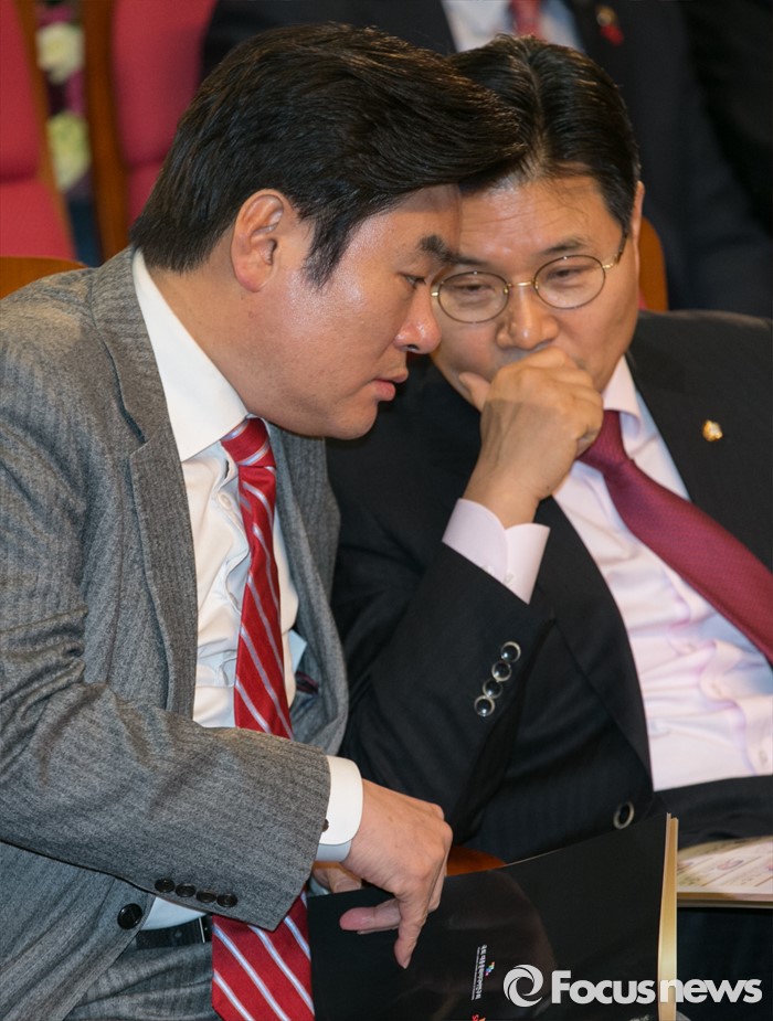 | △ 대화하는 원유철-홍문종 |