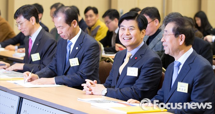 (세종=포커스뉴스) 29일 오후 세종시 정부세종컨벤션센터 국제회의장에서 열린 국가균형발전선언 12주년 기념행사 및 심포지움에 박원순(오른쪽부터) 서울시장, 이춘희 세종시장, 최문순 강원지사, 안희정 충남지사가 참석해 대화하고 있다.