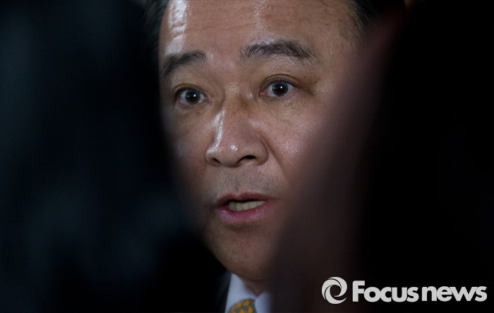 (서울=포커스뉴스) 고 성완종 전 경남기업 회장에게 불법 정치자금 3000만원을 받은 혐의로 기소된 이완구 전 국무총리가 29일 오후 서울중앙지방법원에서 열린 1심 선고공판에서 징역 8월에 집행유예 2년, 추징금 3000만원을 선고 받고 취재진 질문에 답하고 있다.