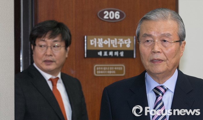 (서울=포커스뉴스) 김종인 더불어민주당 비상대책위원장이 29일 오후 서울 여의도 국회에서 기자회견을 위해 입장하고 있다. 김 위원장은 선거구 획정 등 선거법 우선 처리를 주장했다. 왼쪽은 이춘석 원내수석부대표.