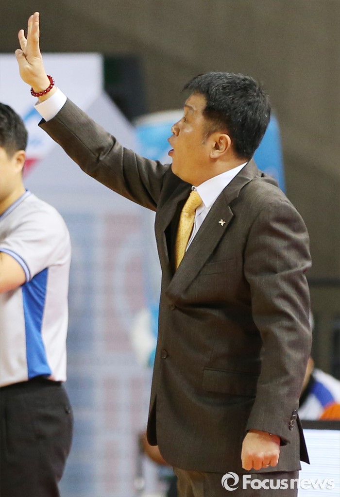 (인천=포커스뉴스) 29일 인천 삼산체육관에서 열린 2015-2016 프로농구 전자랜드-SK 경기에서 전자랜드 유도훈 감독이 손가락을 펴 보이면서 작전을 지시하고 있다.