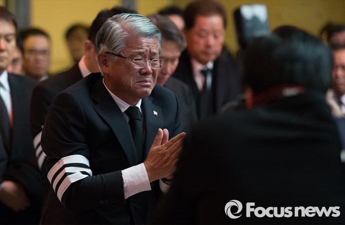 (서울=포커스뉴스) 31일 오전 서울 강남구 삼성서울병원에서 최신원 SKC 회장이 故 최종건 SK그룹 창업주의 아내이자 어머니인 노순애 여사 발인식에 참석해 마지막 인사를 하고 있다.