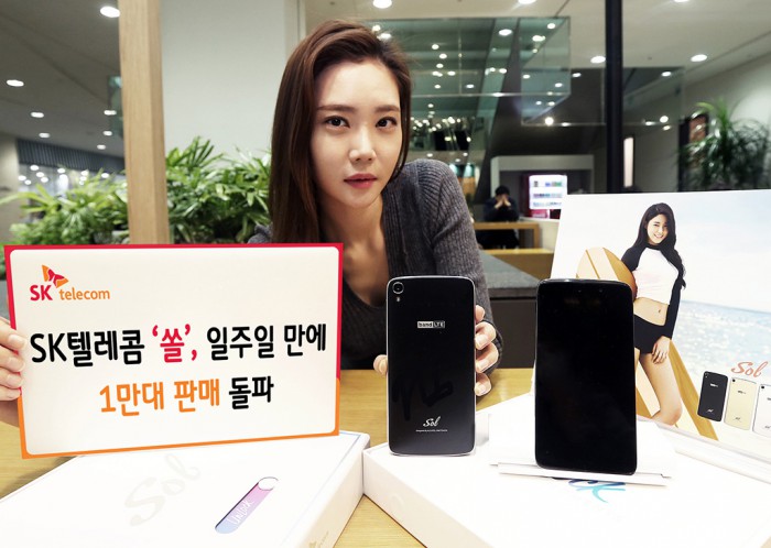 김성수 SK텔레콤 스마트 디바이스 본부장은 “쏠을 구매하는 고객에게 다양한 혜택과 즐거움을 드리기 위해 지속적으로 노력할 것”이라고 밝혔다.모델이 출시 일주일 만에 1만대 판매를 돌파한 중저가 스마트폰 쏠을 소개하고 있다.<사진제공=SK텔레콤>
