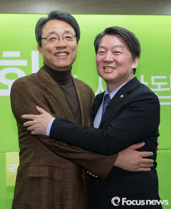 (서울=포커스뉴스) 안철수 국민의당 인재영입위원장(오른쪽)이 1일 오전 서울 마포구 국민의당 당사에서 국민의당 합류 기자회견을 마친 김성식 전 의원과 포옹하고 있다.