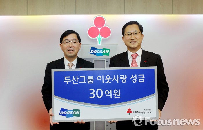 (서울=포커스뉴스) 두산그룹은 1일 사회복지공동모금회에서 진행하는 ‘희망 2016 나눔 캠페인’에 성금 30억 원을 기탁했다고 밝혔다.