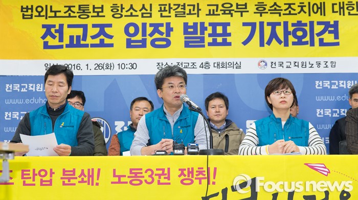 송재혁 전교조 대변인은 이날 포커스뉴스와 통화에서 “오늘 오후 5시쯤 법외노조 통보 효력정지 가처분 신청을 고등법원에 제출하고 대법원에 상고할 방침”이라고 밝혔다.