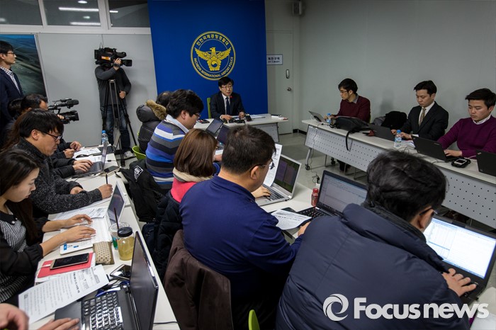 (인천공항=포커스뉴스) 인천국제공항에 폭발물 의심 물체와 함께 아랍어로 된 협박성 메모가 발견된 사건 수사가 진행되고 있는 1일 오후 인천공항경찰대에서 정성채 인천공항경찰대장이 사건 관련 브리핑을 하고 있다.