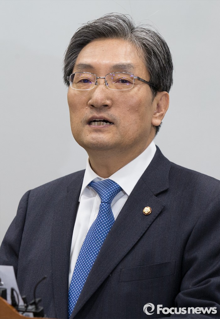 (청주=포커스뉴스) 노영민 더불어민주당 의원이 1일 오후 충북 청주 충북도청 기자실에서 4.13 총선 불출마 선언 기자회견을 하고 있다.