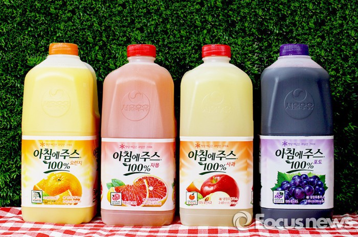 아침에주스는 과당이나 감미료를 첨가하지 않고 과즙 100%로 만든 냉장유통주스다. 생산‧유통‧판매 전 과정이 저온 상태로 유지되는 콜드체인시스템을 사용한다. 신제품 1.8ℓ는 △오렌지 △포도 △사과 △자몽 등 4가지 맛이다. 가격은 5500원.