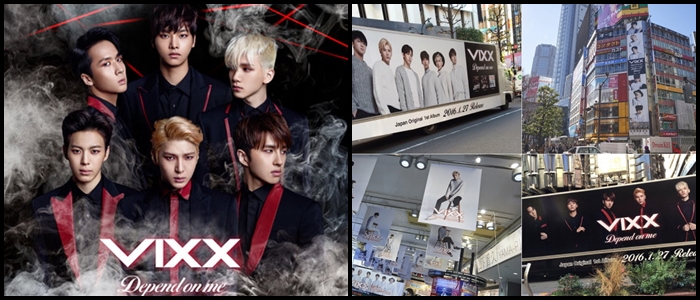 한편 일본 첫 정규 앨범 '디펜드 온 미’ 발매 기념 프로모션을 성황리에 마무리한 후 귀국한 빅스는 계속해서 활발한 국내외 활동을 이어갈 예정이다.그룹 빅스가 일본 첫 정규앨범 'Depend on me'로 오리콘 차트 1위에 올랐다. 사진은 앨범재킷과 일본 도쿄 시부야 빅스 광고들(왼쪽부터) <사진제공=젤리피쉬>