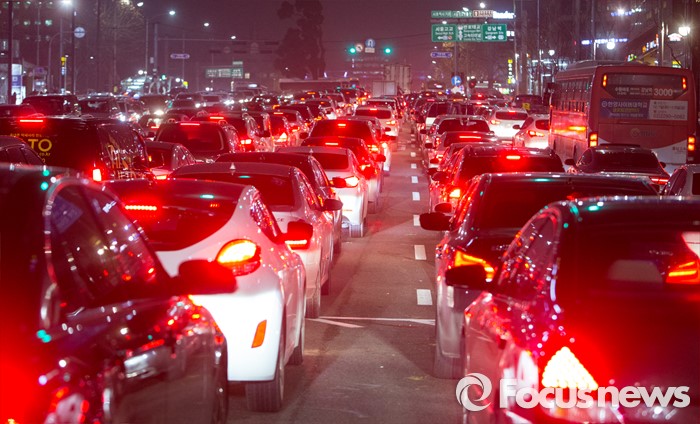 국토부와 도로공사는 국가교통정보센터(www.its.go.kr)와 로드플러스(www.roadplus.co.kr) 누리집 및 스마트폰 앱 ‘통합교통정보’, ‘고속도로 교통정보’ 등을 통해 다양한 교통정보를 제공할 예정이다.(서울=포커스뉴스) 도로 정체 사진.2015.12.24 김흥구 기자