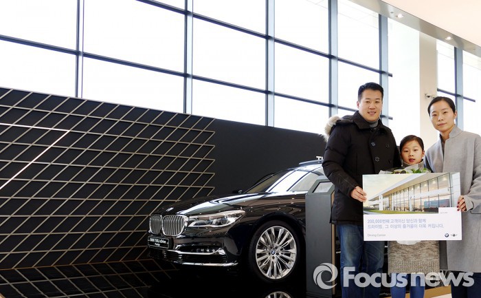 BMW코리아는 BMW 드라이빙 센터 20만번째 내방고객인 우승우 씨와 강윤정 씨 가족에게 50만원 상당의 레스토랑 ‘테라쎄’에서의 점심식사와 BMW 익스클루시브 택시, 챌린지 A 프로그램 체험 기회를 제공했다.BMW 드라이빙 센터에서 20만번째 내방고객인 우승우씨와 강윤정씨 가족이 기념 촬영을 하고 있다. <사진제공=BMW코리아>