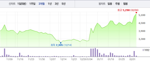4일 오전 9시20분 현재 슈넬생명과학은 전날보다 190원(3.81%) 오른 5180원에 거래되고 있다.