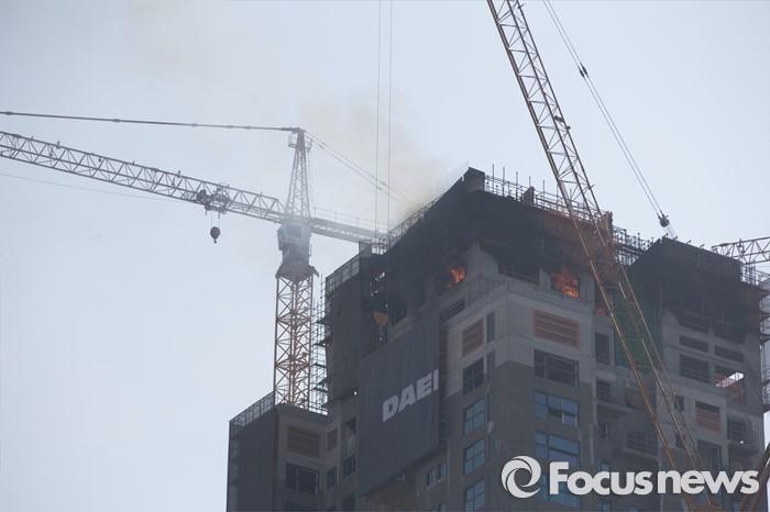 (서울=포커스뉴스) ‘황금 설연휴’를 하루 앞둔 5일 오후 2시 9분쯤 서울 서초구 반포동 아파트 공사현장의 꼭대기층인 38층에서 불이 나 55분만에 완전히 꺼졌다.