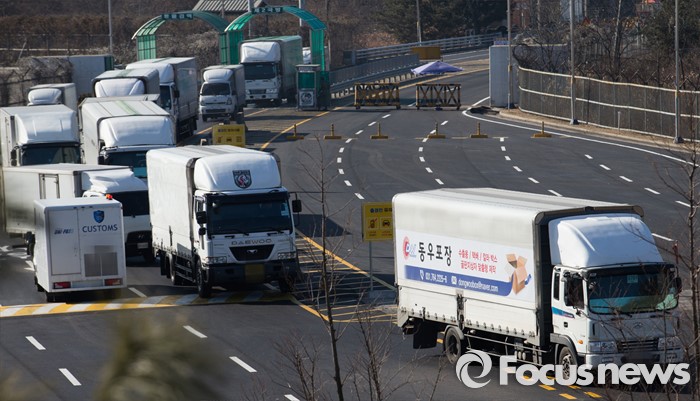 | △ 입경하는 개성공단 입주 차량들 |