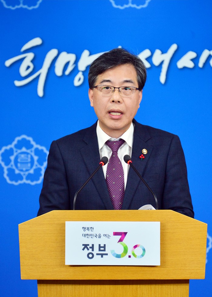 송 차관은 "공공기관은 내부 동기부여가 미흡하고 업무에 따른 공정한 보상이 이뤄지지 않고 있어 성과연봉제 확대를 통한 조직 문화의 혁신이 반드시 필요하다"며 "공공기관의 근본적인 체질개선을 위해 각 부처와 공공기관이 성과연봉제 확대에 강한 추진의지를 갖고 조속히 확대·도입해야한다"고 말했다.(서울=포커스뉴스) 송언석 기획재정부 차관이 1월 28일 서중 종로구 정부서울청사 브리핑룸에서 공공기관 성과연봉제 확대 실시와 관련하여 브리핑을 하고 있다. <사진제공=기획재정부> 포커스포토