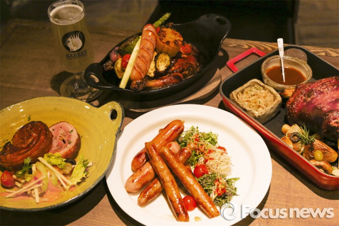 다이닝펍 공방에서는 진주햄이 지난해 인수한 수제맥주 브랜드 '카브루'와 프리미엄 소시지 '육공방' 등을 맛볼 수 있다.