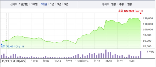 김승우 삼성증권 연구원은 “램시마 등의 선진국 선점 효과가 상당 부분 주가에 이미 반영돼 있다”며 “추가 상승 여력은 크지 않아 보인다”고 예상했다.주가흐름<사진출처=네이버 캡쳐>