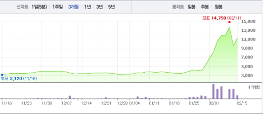 유니더스는 12일 20%가 넘는 급락세를 보였지만 15일 현재 20%에 가까운 급등세를 보이면서 회복 중이다. 이날 오전 9시58분 현재 전일 대비 17.28%(1650원) 오른 1만1120원에 거래 중이다.