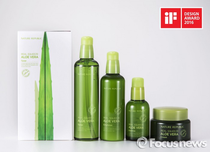 한편 'IF 디자인 어워드'는 레드닷, IDEA와 함께 세계 3대 디자인 상 중 하나다. 올해는 53개 국가의 2458개 기업이 5295개 제품을 출품했다.IF 디자인 어워드 2016에서 본상을 받은 네이처리퍼블릭의 '리얼 스퀴즈 알로에베라' 라인 제품컷. <사진제공=네이처리퍼블릭>