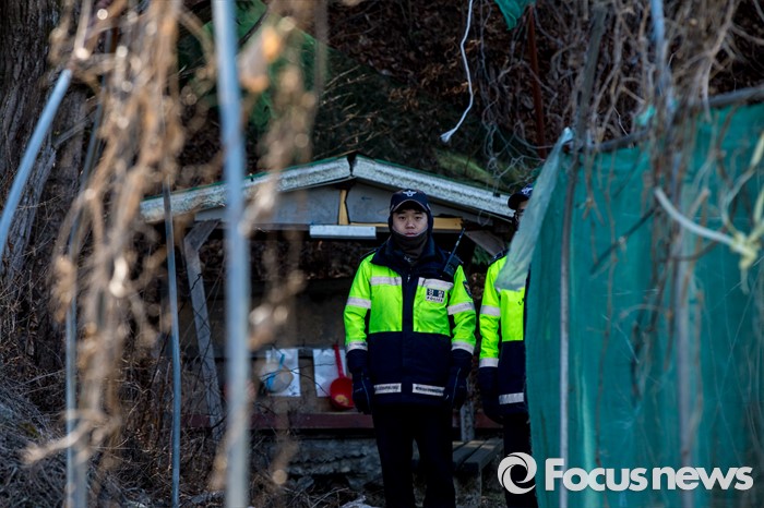 | △ 사체 유기 현장 지키는 경찰병력 |