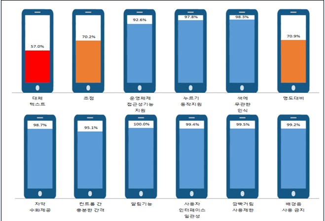 모바일 앱 접근성 수준도 지속적으로 향상되고 있으나 아직도 개선할 점이 많은 것으로 조사됐다.