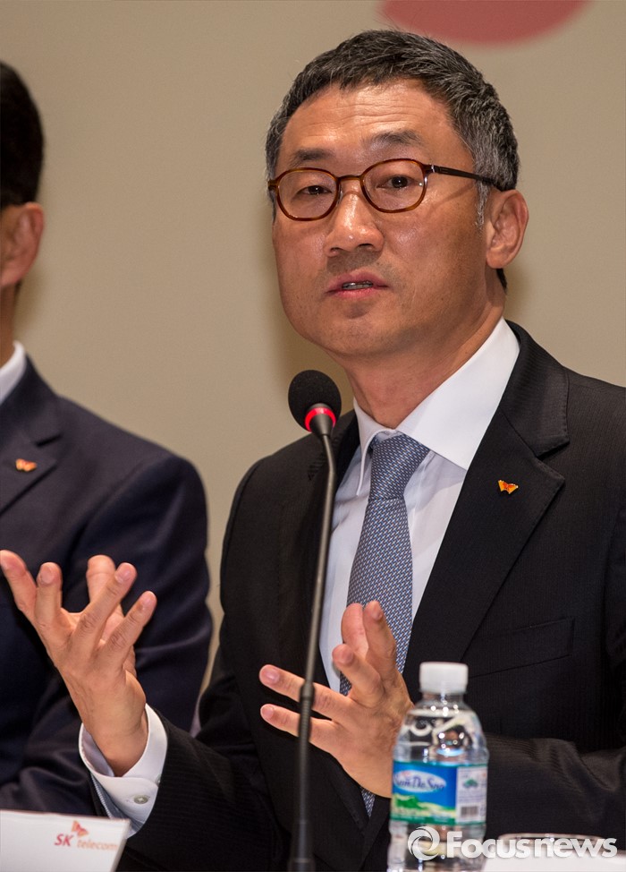 구글은 자회사인 유투브의 뉴미디어 추진 전략을, SK텔레콤은 VR·AR 같은 신규 미디어 개발 전력과 최근 발표한 ‘초고화질 생방송 플랫폼’과 연계한 1인 미디어 시장의 성장 현황 등을 소개해 참석자들의 관심을 끌었다.(서울=포커스뉴스) 2일 오후 서울 중구 SK T타워에서 열린 'SK텔레콤-CJ헬로비전' 인수합병 설명회에 참석한 이인찬 SK브로드밴드 대표가 취재진의 질문에 답하고 있다. 2015.12.02 양지웅 기자