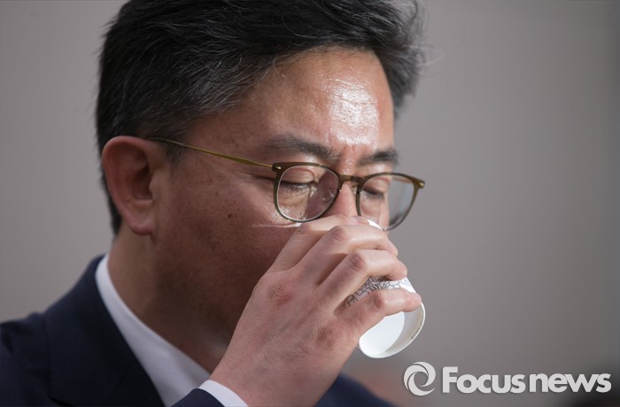 | △ 목 축이는 통일부 장관 |