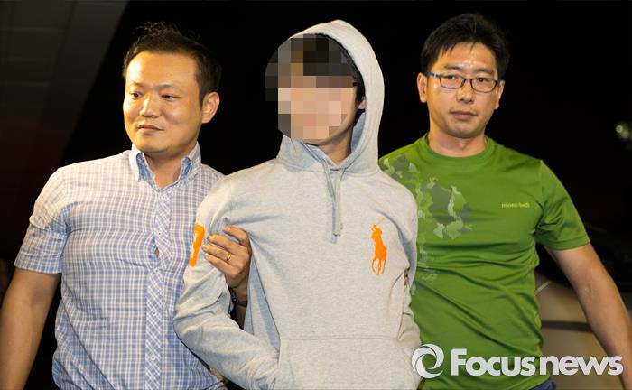| △ 경찰서 향하는 중학교 부탄가스 폭발 용의자 |