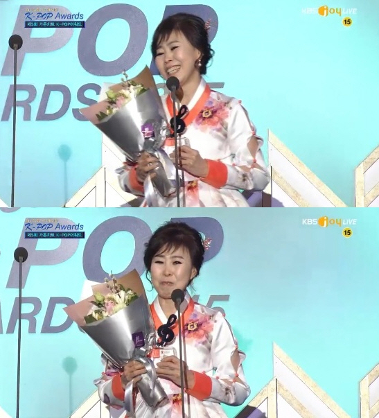 (서울=포커스뉴스) 트로트가수 이애란이 ‘2016 가온차트 K-POP 어워드'에서 ‘올해의 발견 상’을 받고 눈물을 흘렸다.