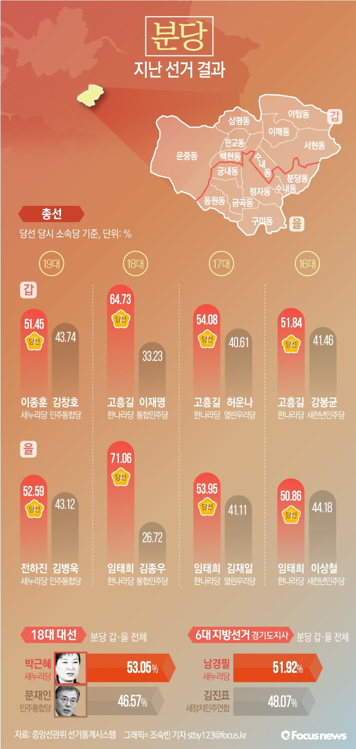 실제로 분당이라는 선거구가 생긴 1992년 14대 총선 이후 2011년 손학규 당시 민주당 대표가 당선된 분당을 재보궐선거 이외에는 야당의 진입을 허락하지 않았다.