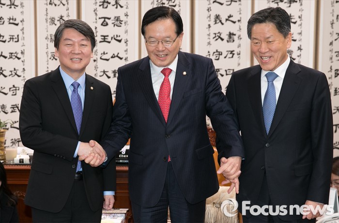 | △ 국민의당 지도부와 손 잡은 정의화 국회의장 |