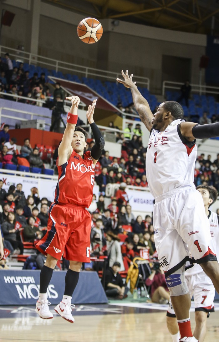 KGC는 찰스 로드(27득점)을 중심으로 마리오 리틀(16득점)이 힘을 냈지만 국내선수들의 득점지원을 받지 못해 연패에 빠졌다. 30승23패로 4위 자리를 유지했다.남자프로농구 모비스 양동근이 19일 열린 KGC와의 경기에서 슈팅하고 있다. <사진제공=프로농구연맹>