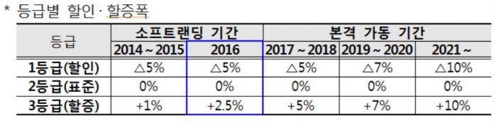 22일 예금보험공사에 따르면 2016년 보험료 납부분부터 금융사의 경영 및 재무상황에 따라 차등 책정되는 보험료율이 1.5%포인트 가량 오른다. 할인 구간인 1등급이나 표준 구간인 2등급을 받은 회사의 보험료율은 그대로지만 할증 구간에 포함된 3등급의 경우에는 표준보험료율 대비 할증폭이 1%에서 2.5%로 확대된다.