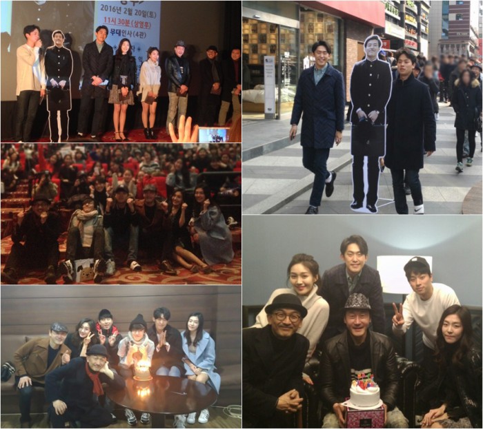 영화 동주는 지난 17일 개봉했고, 이 감독과 배우들은 개봉 첫 주 무대인사를 통해 관객과 뜨거운 만남을 가졌다. 20일과 21일 열린 무대인사에 윤동주 역을 맡은 강하늘은 개인일정 상 21일 하루만 참석했다. 대신 20일에는 강하늘 등신대가 함께했다. 강하늘은 21일 노래 '자화상'을 직접 부르며 전날 빠진 아쉬움을 대신했다.