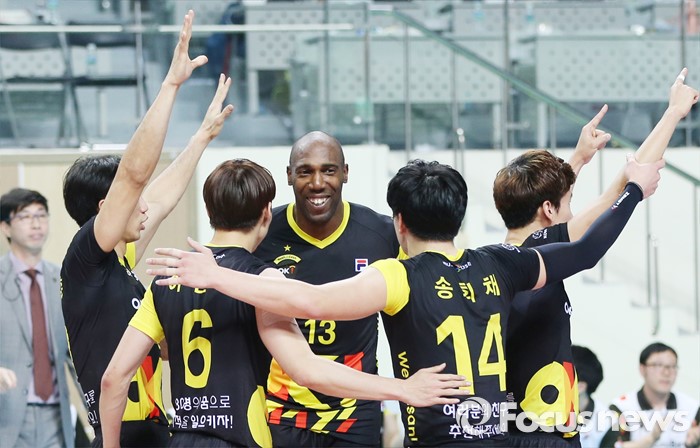 OK저축은행은 22일 오후 구미박정희체육관에서.열린 KB손해보험과의 NH농협 2015-2016 V-리그 남자부 6라운드 원정경기에서 세트스코어 3-2(25-16 22-25 20-25 25-22 15-13)으로 승리했다. OK저축은행은 1세트를 25-16으로 승리하며 비교적 손쉽게 경기를 시작했다.
