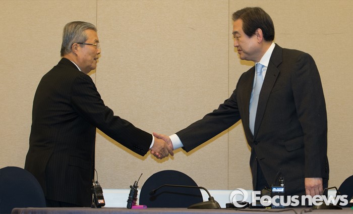 | △ 악수하는 김무성 대표와 김종인 비대위 대표 |