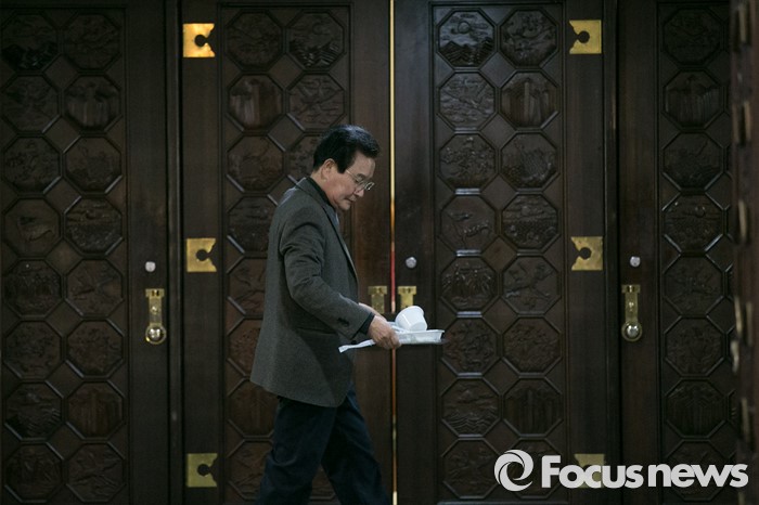 (서울=포커스뉴스) 변재일 더불어민주당 비대위원이 23일 오후 서울 여의도 국회 본회의장 정문 앞에서 도시락을 들고 지나고 있다. 이 시간 본회의장에서는 테러방지법과 관련한 김광진 더민주 의원의 무제한토론이 진행되고 있다.