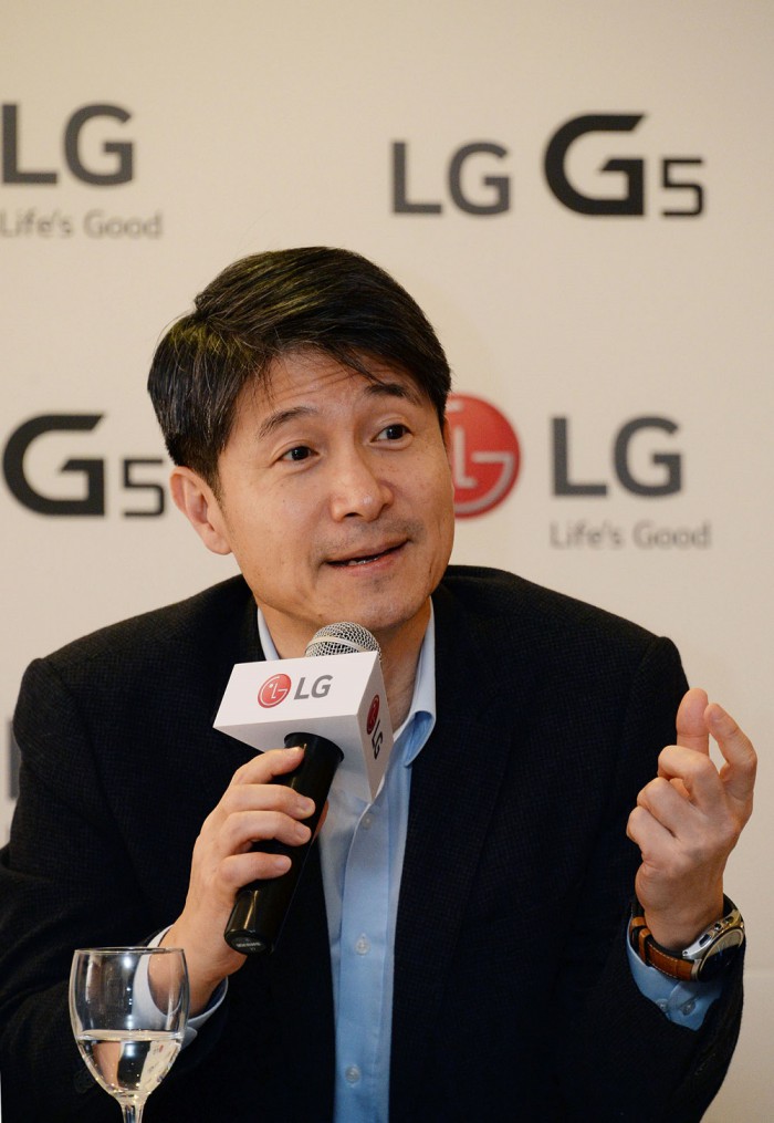 이번 MWC에서 공개된 G5는 빠르면 3월말 4월초 출시될 계획이다. 전 세계 200개가 넘는사업자를 통해 신제품을 내놓을 예정이다.조준호 LG전자 사장이 23일(현지시간) 열린 기자간담회에서 질문에 답하고 있다.<사진제공=LG전자>