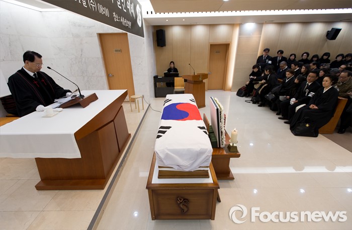 (서울=포커스뉴스) 24일 오전 서울 서초구 서울성모병원에서 故 이기택 전 민주당 총재의 발인 예배가 진행되고 있다.