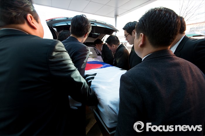 (서울=포커스뉴스) 24일 오전 서울 서초구 서울성모병원에서 故 이기택 전 민주당 총재의 발인식이 진행되고 있다.
