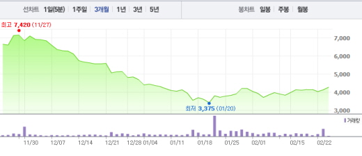 두산인프라코어는 지난 23일 두산밥캣의 국내 상장 추진을 결정했다고 공시했다.주가흐름<사진출처=네이버 캡쳐>