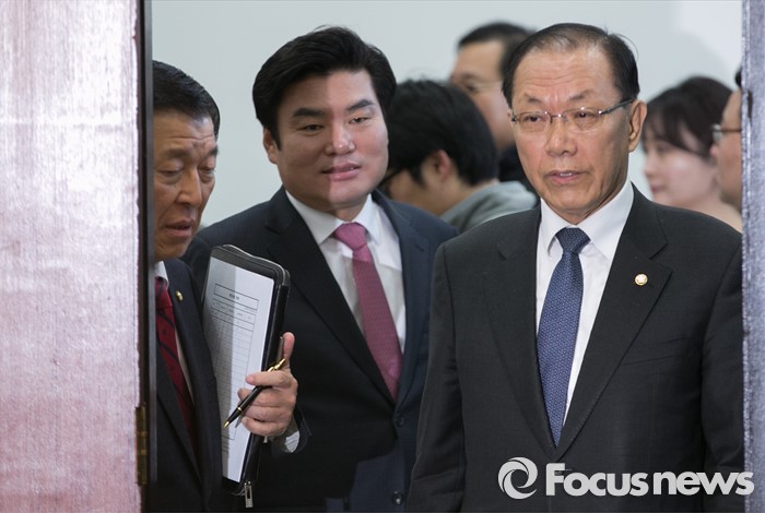 (서울=포커스뉴스) 황진하(왼쪽부터) 새누리당 사무총장, 원유철 원내대표, 황우여 의원이 24일 오전 서울 여의도 국회에서 열린 최고중진연석회의에 참석하고 있다.