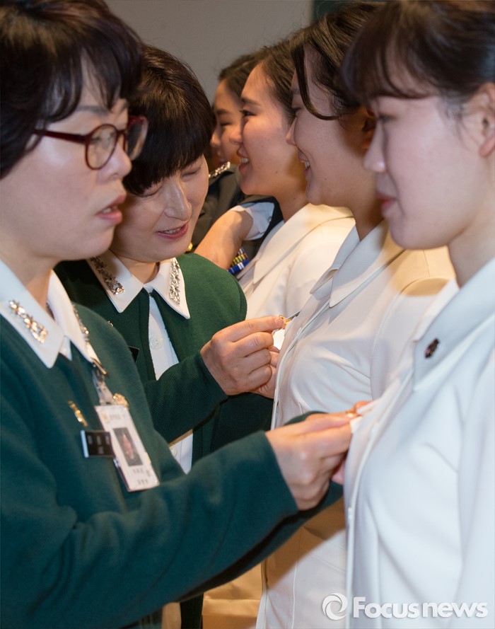 (대전=포커스뉴스) 24일 오전 대전 유성구 국군간호사관학교 백합관에서 열린 졸업매달 수여식에서 제56기 생도들이 졸업매달을 수여받고 있다.