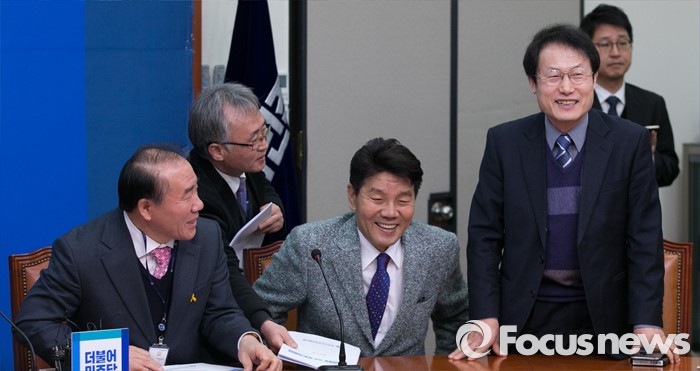 (서울=포커스뉴스) 장휘국(왼쪽부터) 전국시도교육감협의회장, 이청연 인천시교육감, 조희연 서울시교육감이 24일 오전 서울 여의도 국회에서 김종인 더불어민주당 비대위 대표와 간담회에 앞서 대화하고 있다.