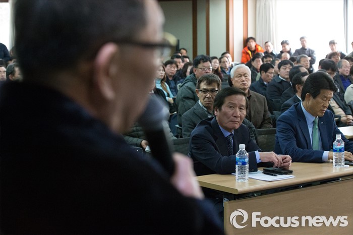 (서울=포커스뉴스) 정기섭 개성공단기업협회장이 24일 오전 서울 여의도 중소기업중앙회에서 열린 개성공단 기업 비상대책위원회 총회에서 참석해 입주기업 관계자가 질문을 듣고 있다.